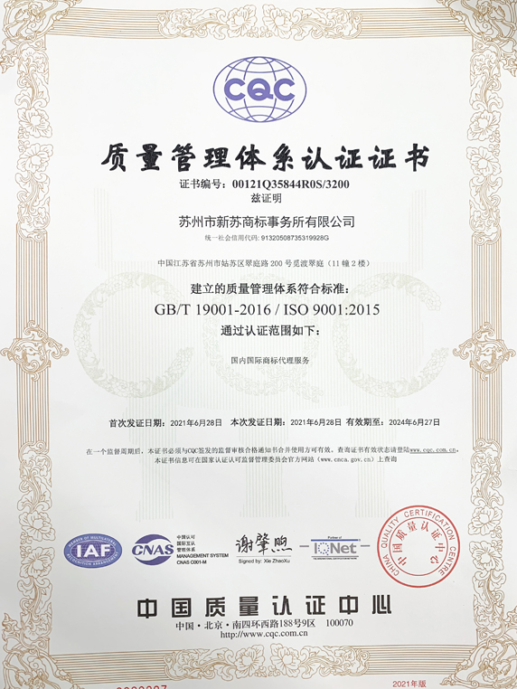 質(zhì)量管理體系認證證書